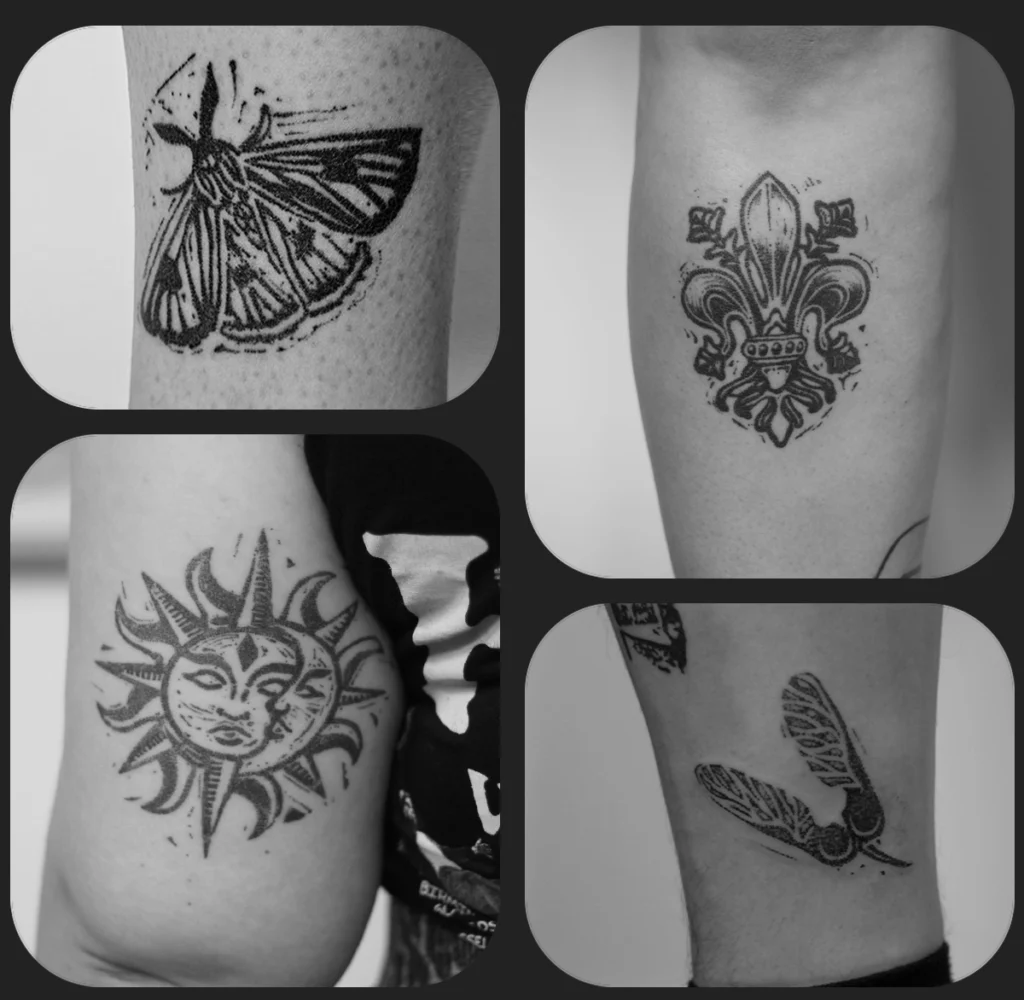 Wist je dat lino stempels ook perfect te verwerken zijn tot tattoo ontwerp? Op basis van jouw wensen werk ik graag aan een custom handgemaakt ontwerp. Aanvullend is het mogelijk om een fysieke print van jouw tattoo te ontvangen. Uitgewerkt in grijstinten, vol karakter en leuke details. Volg je de workshop ‘Stempels maken’? Dan is jouw eigen stempeldesign in een persoonlijke vervolgafspraak om te zetten naar tattoo (vanaf 18 jr.).
